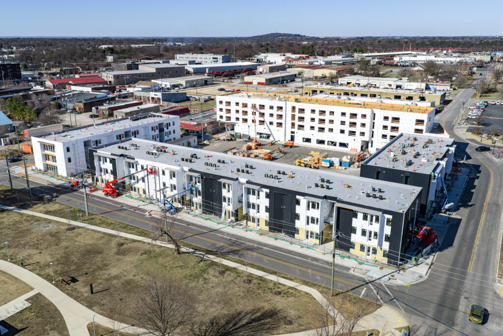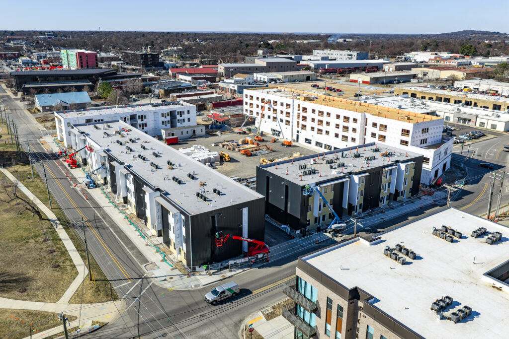 Construction is underway at VIA, a multi-family and retail development in downtown Springdale, AR. The project, developed by Bentonville-based Blue Crane and designed by BUF Studio and modus studio, will bring more than 150 residential units and 11,600 square feet of retail space to the downtown core.
